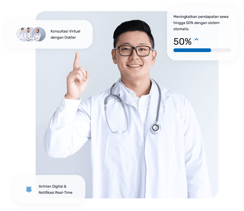 Mempercepat alur layanan kesehatan Rumah Sakit sejak kedatangan awal pasien hingga selesai perawatan medis.